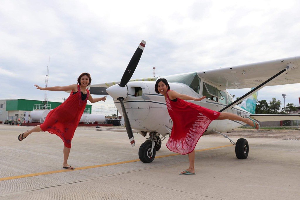 私たちは、今回出会った旅人仲間に誘われてセスナに乗って空からブルーホールを楽しむことにしました♡