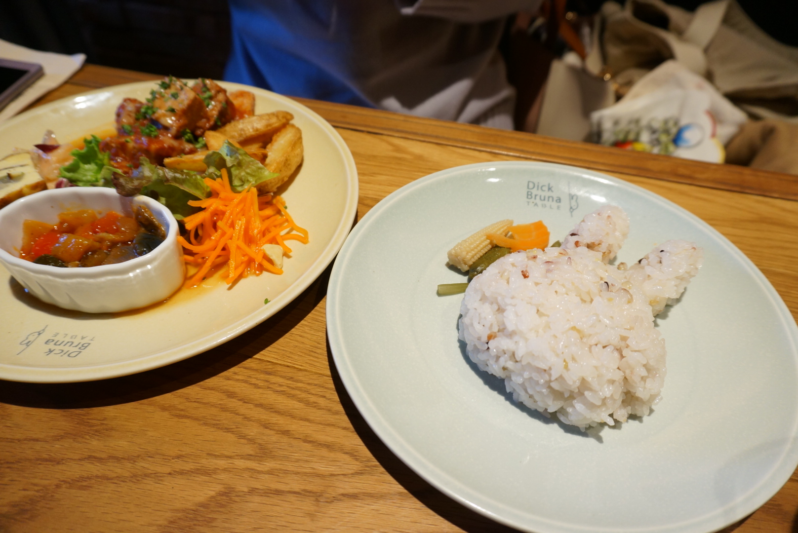 運ばれてきたプレートは温かみのある色合いにDick Bruna TABLEのロゴマークとミッフィーデザインが!