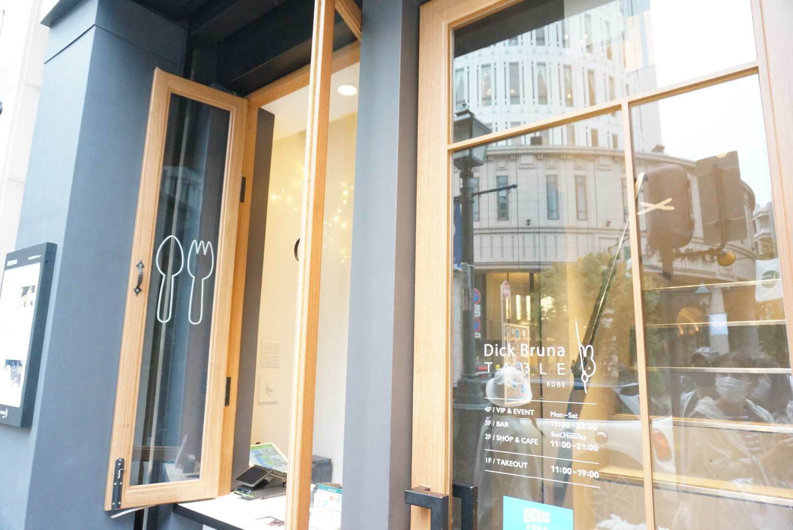 大丸神戸店の道路向かいにあるので探しやすいですし、建物の一番上には黒い看板に大きくDick Bruna TABLEの文字とミッフィーのロゴマークが描かれているので目印にしてください♪