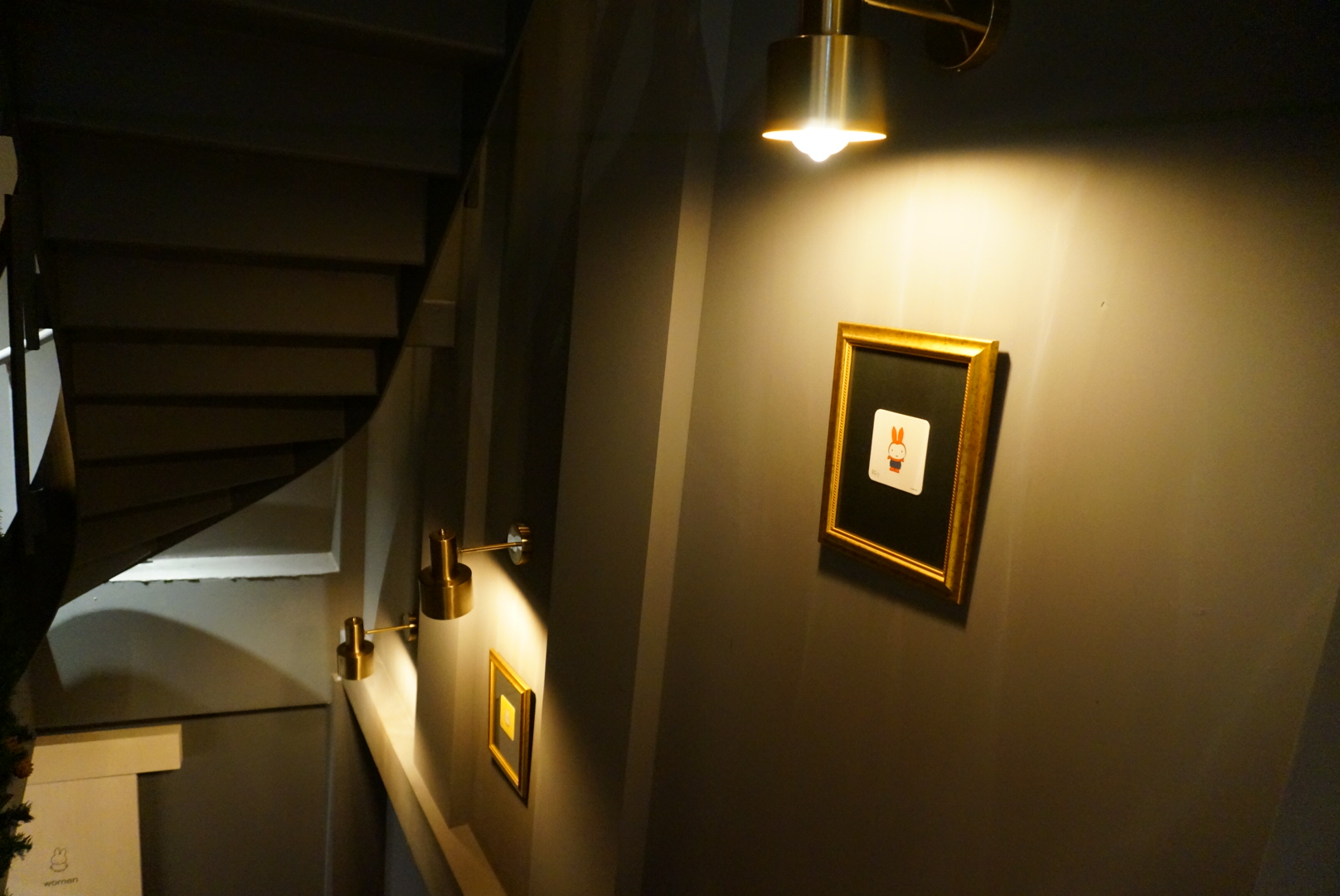 1階から2階への階段部分には、壁にミッフィーの目と口が☆
