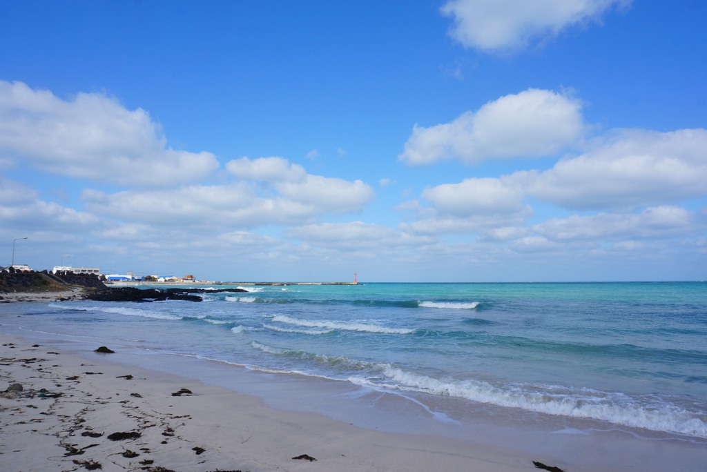 済州島の魅力の1つがエメラルド色の美しい海