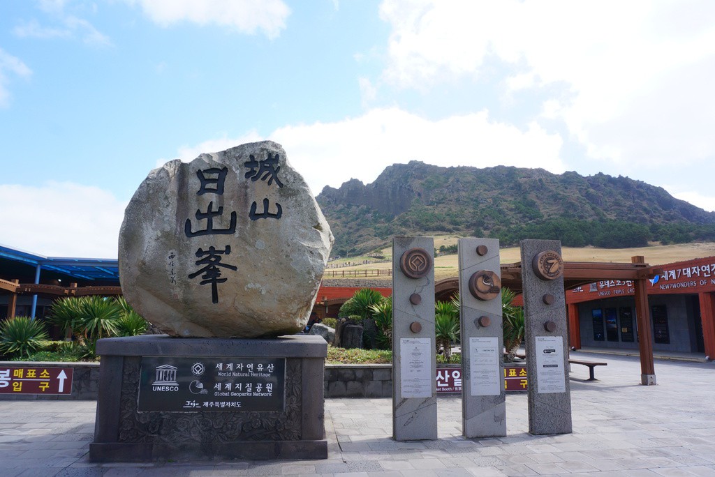 済州島の東側に位置する火山である城山日出峯(ソンサンイルチュルボン)は、10万年前の海底火山の噴火によって出来上がり、標高は182mで世界遺産に登録されています。