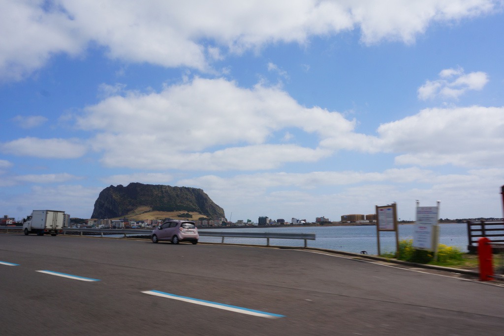 城山日出峯を離れてみると、王冠の形に似ているとも言われていて、海に浮かぶようなその姿は不思議です☆