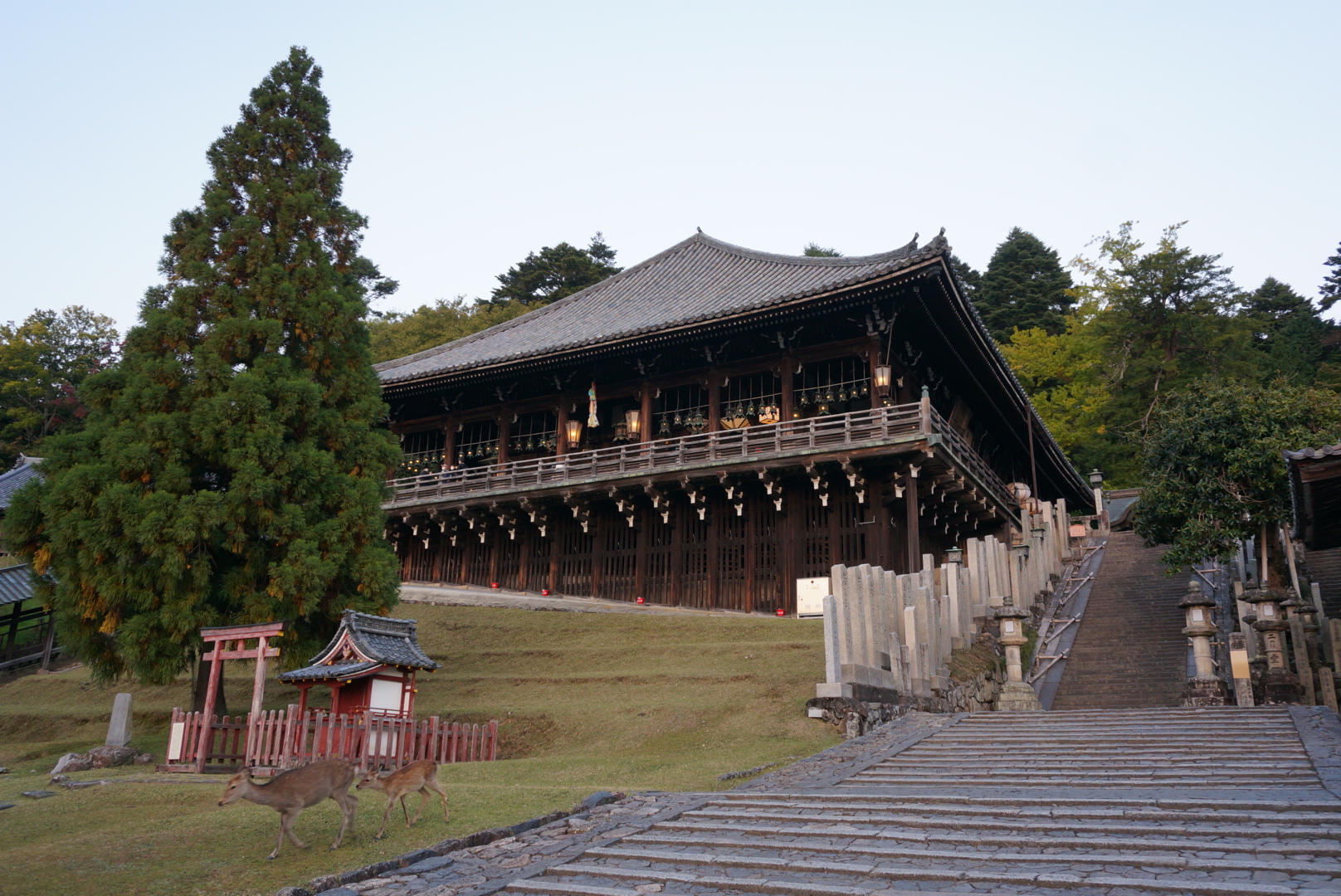 私たちは夕方の時間帯に訪れ、回廊から赤く染まる空と共に灯りがともり始める奈良の街並みを楽しみました☆