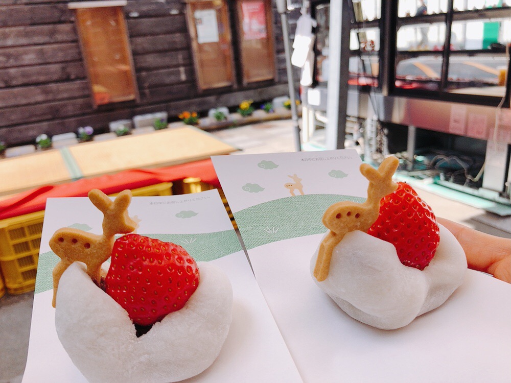 1. 14.大きな大福に可愛い鹿クッキーがインスタ映え「大仏いちご」