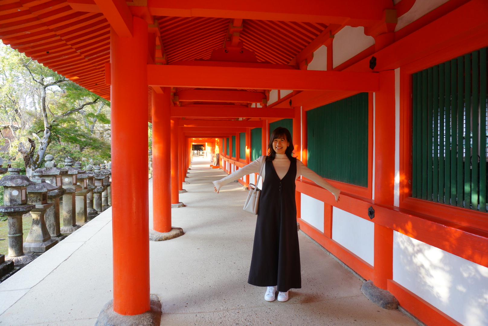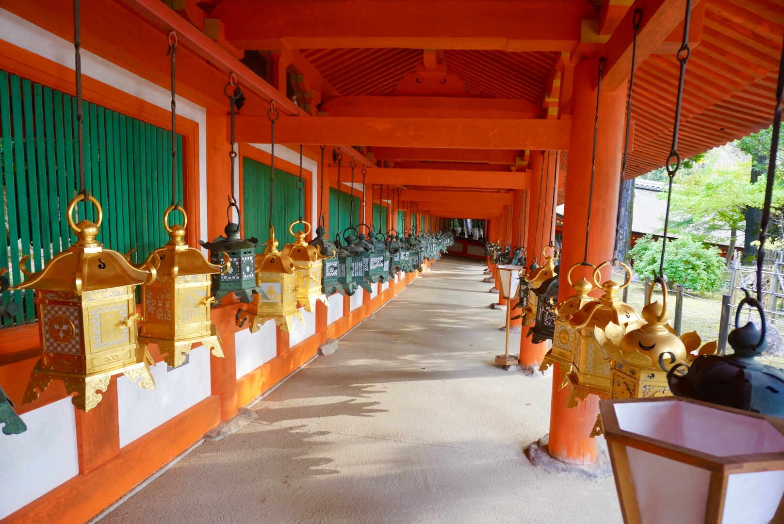 特別拝観エリアに入ると、朱塗りの回廊の中に釣燈籠が並び、春日大社の中でも特に人気の場所間違いなし!