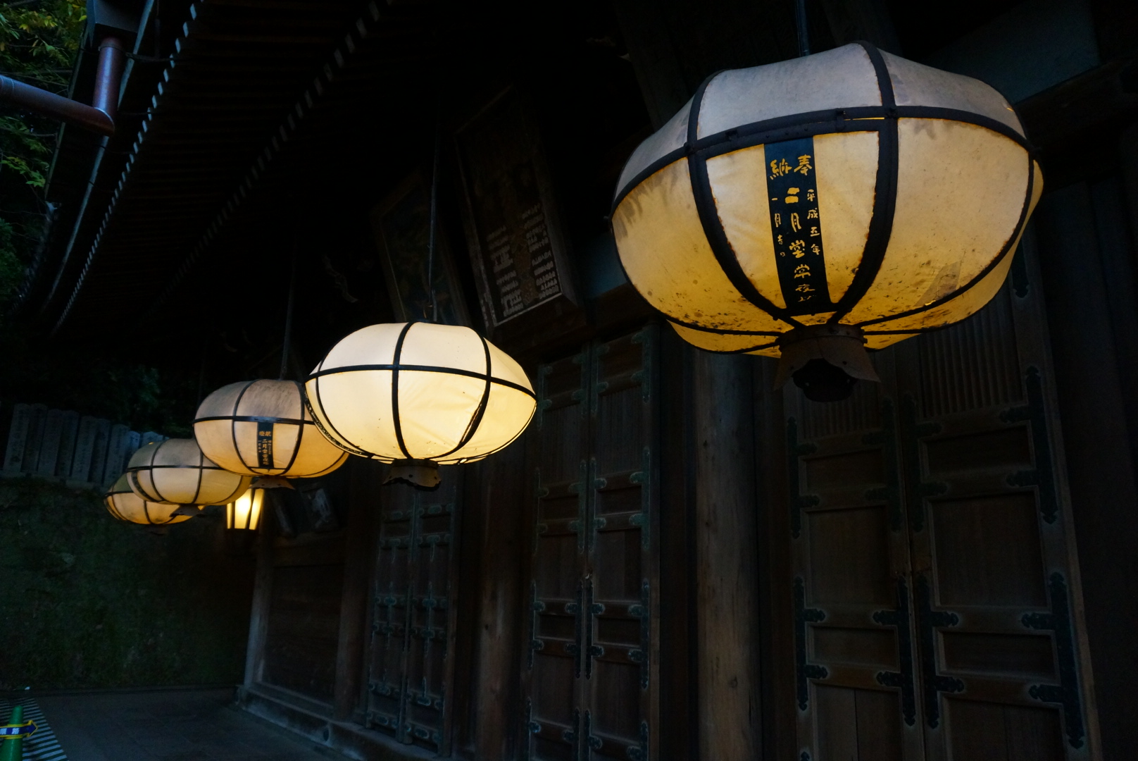 回廊に並ぶ釣り燈籠に灯りがともった姿も美しいので必見です!