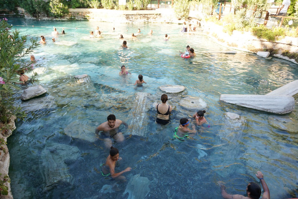 石灰棚のパムッカレでは、水量はそれほど多くないものの水着を着ている人たちを多く見かけました!