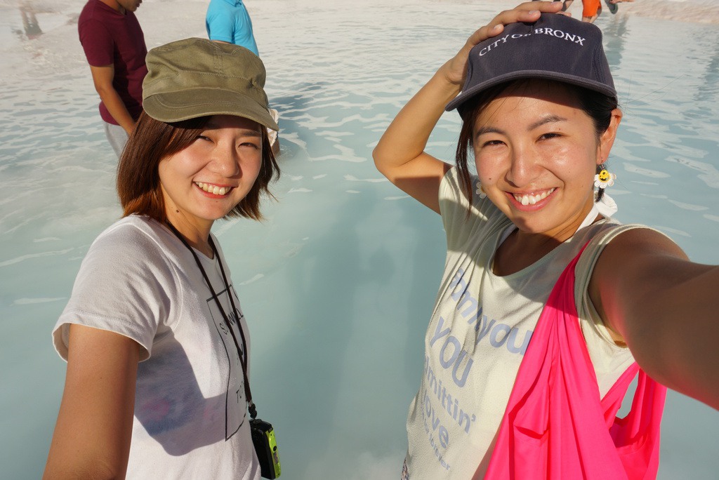 私たちもせっかくだからパムッカレの温泉に浸かりたい!と思い水着着用で向かいました☆